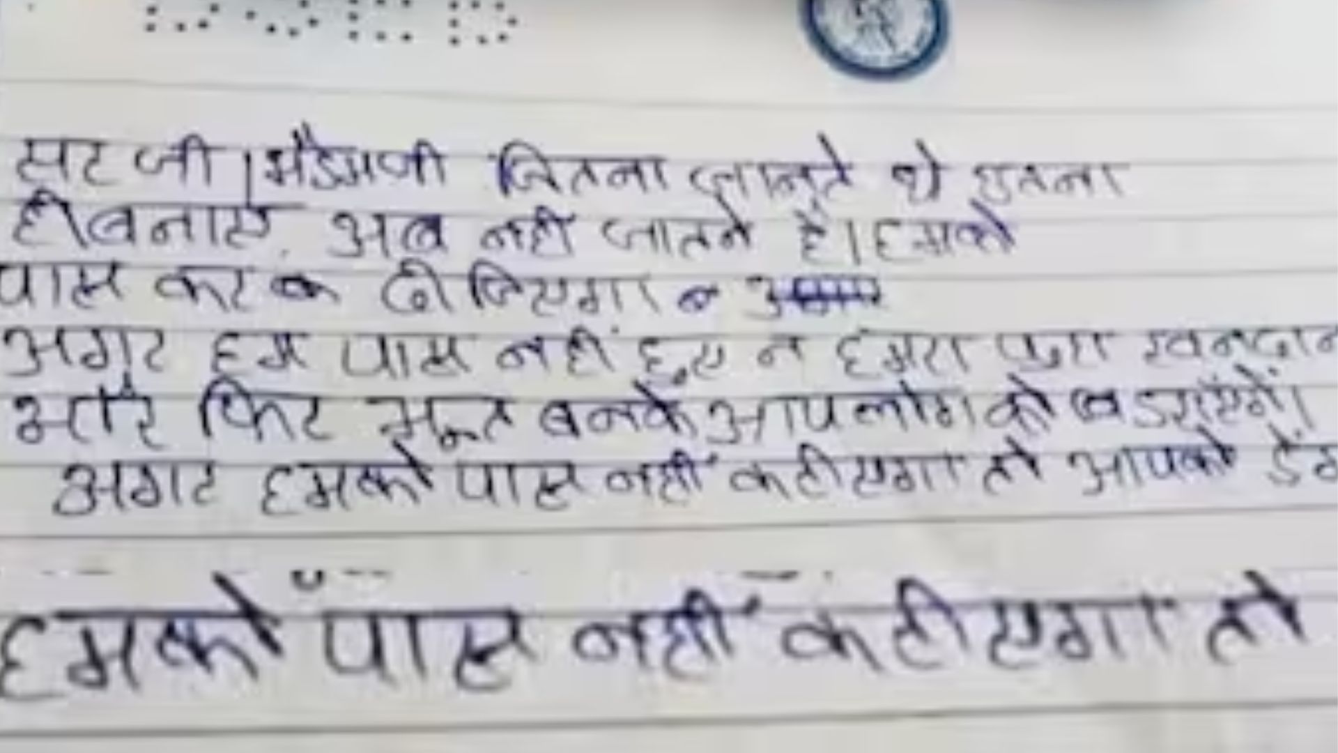 ಇತ್ತೀಚೆಗೆ ಹಿಂದಿಯಲ್ಲಿ ಪರೀಕ್ಷೆ ಬರೆದಿದ್ದ ವಿದ್ಯಾರ್ಥಿಯೊಬ್ಬ ತನ್ನನ್ನು ಪಾಸ್ ಮಾಡುವುದಕ್ಕೆ ವಿಚಿತ್ರವಾಗಿ ಬೆದರಿಕೆ ಹಾಕಿದ್ದನು. ಉತ್ತರ ಪತ್ರಿಕೆಯನ್ನು ಮೌಲ್ಯಮಾಪನ ಮಾಡುವವರಿಗೆ ಬ್ಲಾಕ್ಮೇಲ್ ಮಾಡಿರುವ ಅಪರೂಪದ ಘಟನೆ ವರದಿಯಾಗಿತ್ತು. 'ಸರ್/ಮೇಡಂ, ನಾನು ನನಗೆ ತಿಳಿದಷ್ಟು ಉತ್ತರವನ್ನು ಬರೆದಿದ್ದೇನೆ. ಈಗ ನನಗೆ ಏನು ಮಾಡಬೇಕೆಂದು ತಿಳಿದಿಲ್ಲ. ದಯವಿಟ್ಟು ನನ್ನನ್ನು ಪಾಸ್ ಮಾಡಿ, ನಾನು ಪಾಸ್ ಆಗದಿದ್ದರೆ ನಮ್ಮ ಇಡೀ ಕುಟುಂಬ ಸಾಯುತ್ತದೆ. ನಂತರ ನಾವು ದೆವ್ವಗಳಾಗಿ ನಿಮ್ಮೆಲ್ಲರನ್ನು ಹೆದರಿಸಿ ಬೆದರಿಸುತ್ತೇವೆ. ನನ್ನನ್ನು ಪಾಸ್ ಮಾಡದೇ ಇದ್ದರೆ ನಿಮಗೆ ಡೆಂಗ್ಯೂ ಬರುತ್ತದೆ' ಎಂದು ಶಾಪ ಹಾಕಿದ್ದಾನೆ. ಈ ವಿಚಿತ್ರ ಫೋಟೋವನ್ನು ಸಂಬಂಧಪಟ್ಟ ಮೌಲ್ಯಮಾಪಕರು ಸಾಮಾಜಿಕ ಜಾಲತಾಣದಲ್ಲಿ ಹಂಚಿಕೊಂಡಿದ್ದರು. ಇದೀಗ ಮತ್ತೊಂದು ಬೆಳಗಾವಿ ವಿದ್ಯಾರ್ಥಿಯ ಉತ್ತರ ಪತ್ರಿಕೆ ವೈರಲ್ ಆಗಿದೆ.