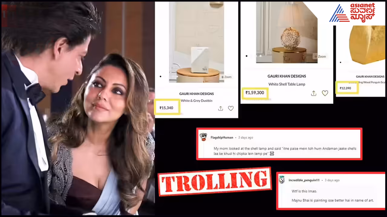 ಬಾಲಿವುಡ್ ನಟ ಶಾರುಖ್ ಖಾನ್ ಪತ್ನಿ ಹಾಗೂ ಇಂಟೀರಿಯರ್ ಡಿಸೈನರ್ ಗೌರಿ ಖಾನ್, ತಮ್ಮ ಮನೆಯ ದುಬಾರಿ ಅಲಂಕಾರಿಕ ವಸ್ತುಗಳಿಂದಾಗಿ ಟ್ರೋಲ್ ಆಗಿದ್ದಾರೆ. ನೋಡಲು ಸಾಮಾನ್ಯ ಎನಿಸುವ ಡಸ್ಟ್​ಬಿನ್​ಗೆ 15 ಸಾವಿರ ರೂಪಾಯಿ ಬೆಲೆ ಇರುವುದೇ ಈ ಟ್ರೋಲ್‌ಗೆ ಕಾರಣವಾಗಿದೆ.