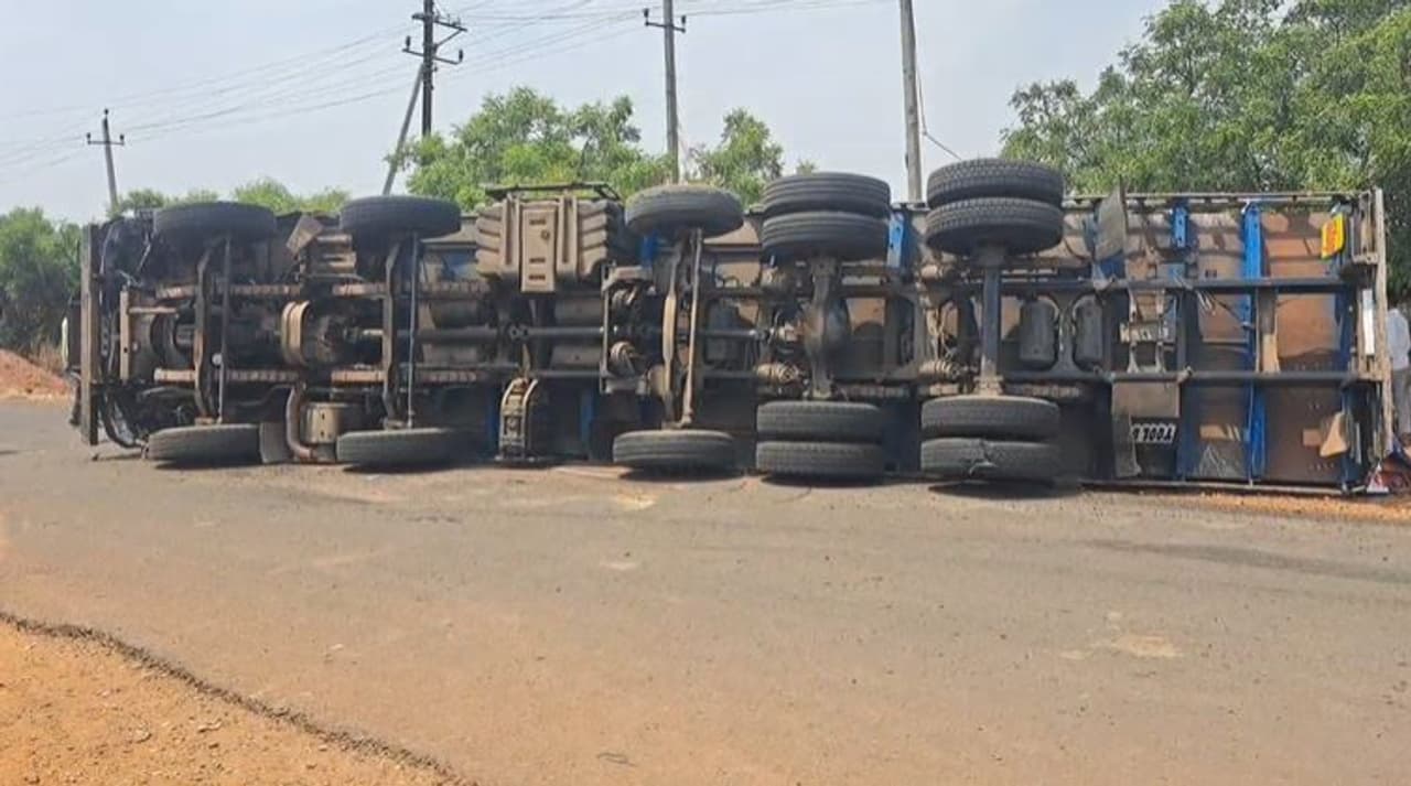 ಅಕ್ರಮ ಪಡಿತರ ಅಕ್ಕಿ ಸಾಗಿಸುತ್ತಿದ್ದ ಲಾರಿ ಪಲ್ಟಿ