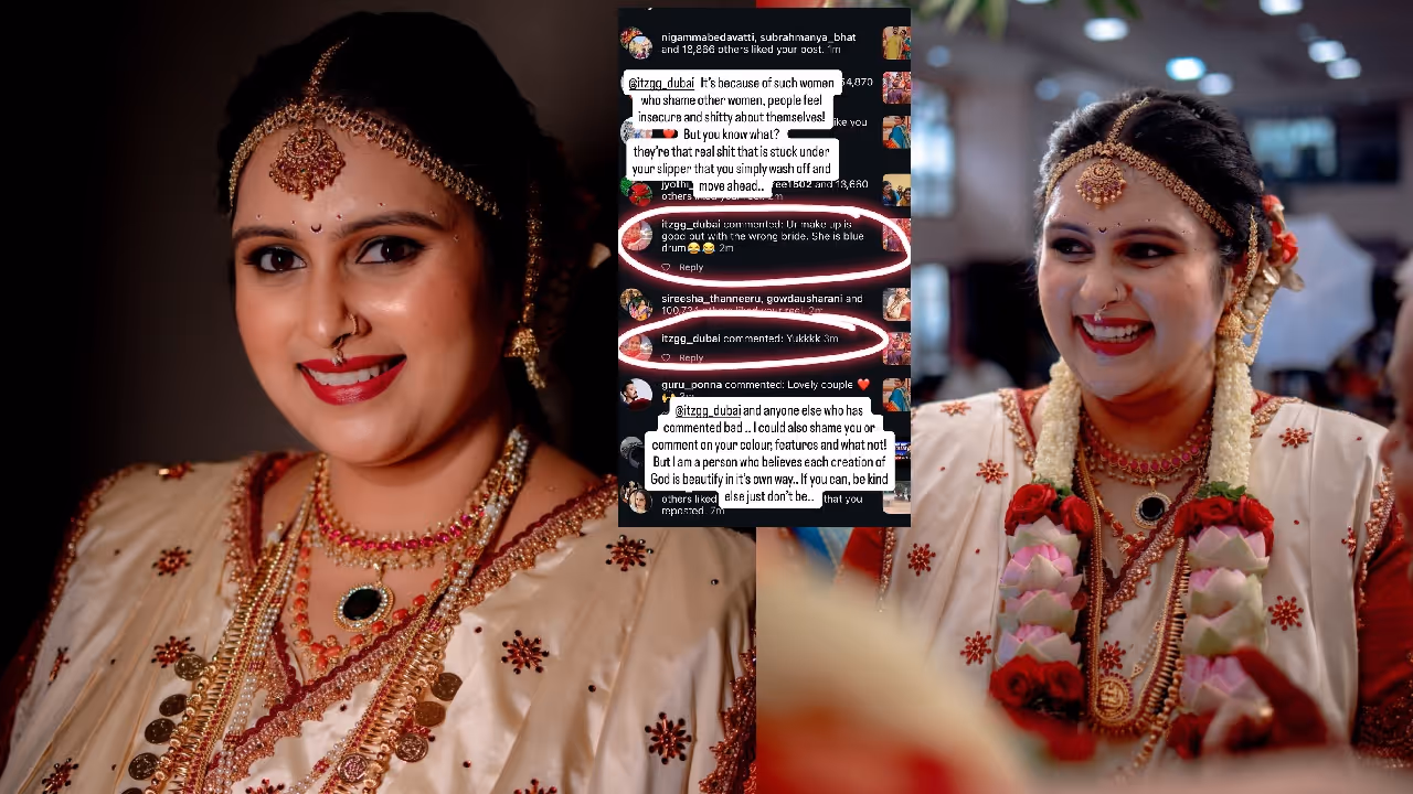 ಮೇಕಪ್ ಆರ್ಟಿಸ್ಟ್ ಒಬ್ಬರು ಗೀತಾಭಾರತಿಗೆ ಮೇಕಪ್ ಮಾಡಿದ ವಿಡಿಯೋ ಹಂಚಿಕೊಂಡಿದ್ದರು. ಓರ್ವ ಮಹಿಳೆಯೆ “ಮೇಕಪ್ ಚೆನ್ನಾಗಿದೆ, ನಿಮ್ಮ ವಧು ಆಯ್ಕೆ ತಪ್ಪಾಗಿದೆ” ಎಂದು ಕಾಮೆಂಟ್ ಮಾಡಿದ್ದರು. ಇದನ್ನು ನೋಡಿ ಗೀತಾಭಾರತಿ ಭಟ್ಗೆ ಸಿಟ್ಟು ಬಂದಿದೆ. ಸೋಶಿಯಲ್ ಮೀಡಿಯಾದಲ್ಲಿ ಅವರು ಪ್ರತಿಕ್ರಿಯೆ ನೀಡಿದ್ದಾರೆ.