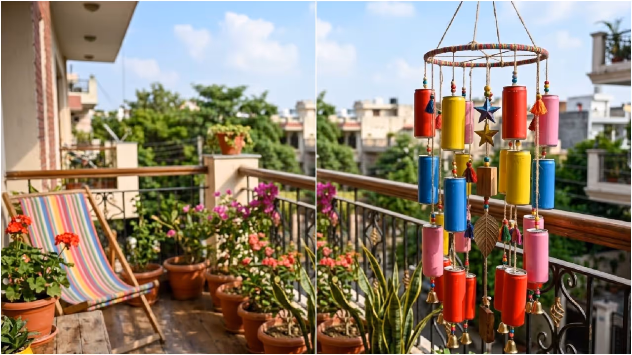 ಹಲವಾರು ಕೋಲ್ಡ್ ಡ್ರಿಂಕ್ ಕ್ಯಾನ್ಗಳಿಂದ ನೀವು ಸುಂದರವಾದ ವಿಂಡ್ ಚೈಮ್ ಮಾಡಬಹುದು. ಇದಕ್ಕಾಗಿ ನಿಮಗೆ 6 ರಿಂದ 10 ಕ್ಯಾನ್ಗಳು ಬೇಕಾಗುತ್ತವೆ. ಜೊತೆಗೆ, ಮನೆಯಲ್ಲಿರುವ ಬಣ್ಣದ ದಾರಗಳು ಮತ್ತು ಇತರ ವಸ್ತುಗಳಿಂದ ವಿಂಡ್ಚೈಮ್ ಲುಕ್ ಸಿದ್ಧಪಡಿಸಬಹುದು. ಮೊದಲು, ಸ್ಪ್ರೇ ಬಣ್ಣ ಬಳಸಿ ಕ್ಯಾನ್ಗಳಿಗೆ ನಿಮ್ಮಿಷ್ಟದ ಬಣ್ಣ ಹಚ್ಚಿ. ನಂತರ, ಅದರ ಮೇಲೆ ಡಾಟ್ಸ್ ಬಳಸಿ ಹೂವುಗಳನ್ನು ಬಿಡಿಸಬಹುದು. ಈಗ ದಾರ ಕಟ್ಟಿ ನೇತುಹಾಕಿ. ಯಾವುದೇ ಖರ್ಚಿಲ್ಲದೆ ಮನೆಗೆ ಸುಂದರ ಅಲಂಕಾರಿಕ ವಸ್ತು ಸಿದ್ಧವಾಗುತ್ತದೆ.