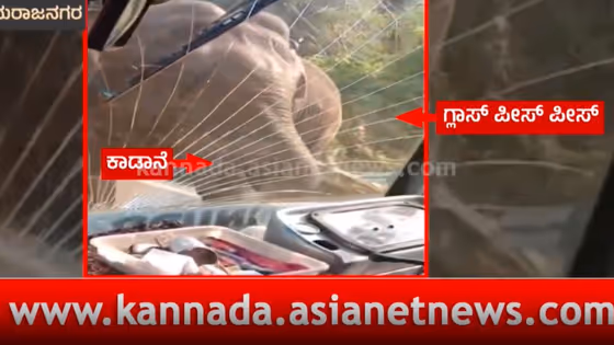 ಸೊಂಡಿಲೆತ್ತಿ ಕಬ್ಬು ಲಾರಿ ಮುಂಭಾಗದ ಗಾಜಿನ ಮೇಲೆ ಕಾಲಿಟ್ಟ ಆನೆ: ಲಾರಿ ಚಾಲಕ ಗ್ರೇಟ್ ಎಸ್ಕೇಪ್!